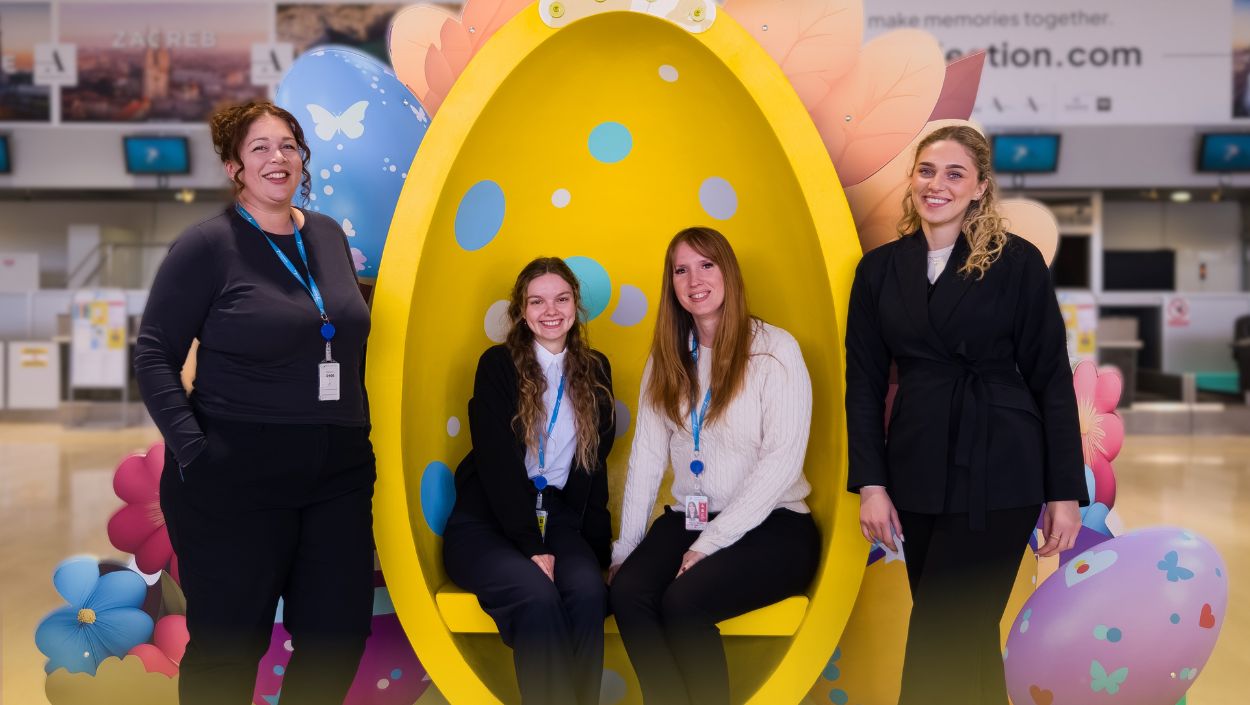 Naše stjuardese vam šalju blagdanske pozdrave iz Zračne luke Pula – neka vam ovaj Uskrs bude ispunjen mirom, radošću i vedrim nebom.